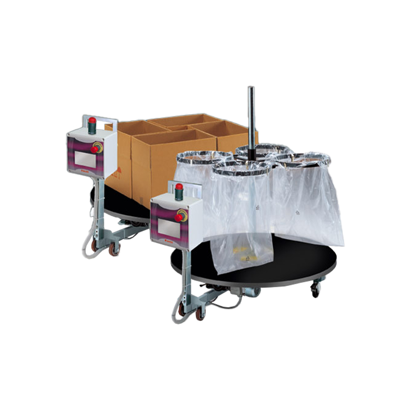 • Mesa giratoria para llenado de cajas con movimiento giratorio programable.